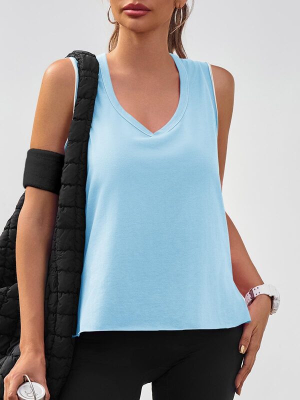 - Tops Chic Designs: These Women’s Tank Tops are designed for ultimate comfort and style. The crewneck, sleeveless design , the loose fit ensure freedom of movement. The frayed hem adds a trendy and casual touch, giving the top a unique and modern appearance